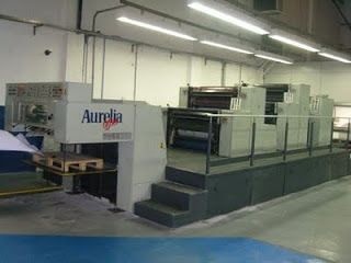 Modelo Aurélia 720 Ano de fabricação 1998/99 4 cores Formato Máximo: 740 x 1040mm Controle Remoto de Tinteiros Acerto (registro) via painel de comando Velocidade de Impressão: 13.000 fph Contador: 48.000.000 Aprox